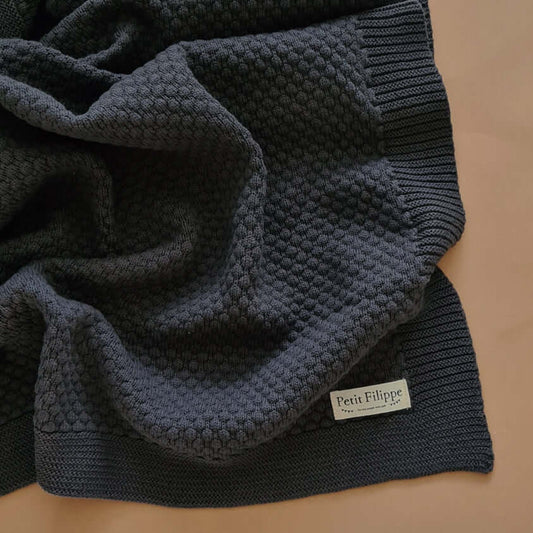 Knitted Blanket - Cotton - 100 x 70 cm - Graphite