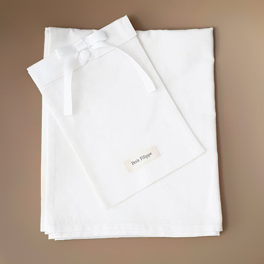 Flachbettlaken aus 100 % reinem, weichem und strapazierfähigem Leinen. Wird in einem passenden Leinenbeutel mit Schleife geliefert, was es zu einem schönen Geschenk macht! Die Größe (90 x 110 cm) ist für jedes Babybett oder Stubenwagen geeignet. Um das Set zu vervollständigen, kaufen Sie auch unsere passenden Spannbettlaken und/oder gestrickten Decken.