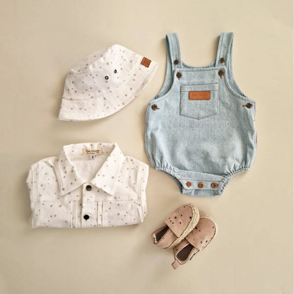 Ist das nicht wunderschön? Baby Strampler aus 100 % Baumwoll-Denim mit verstellbaren Trägern (bietet Platz zum Wachsen!). Perfekt für warme Tage oder, wenn es kälter wird, mit einem einfachen T-Shirt oder Body darunter.
