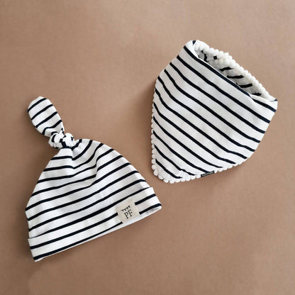 Pom Pom Bib & Knot Hat Set - Breton Stripes
