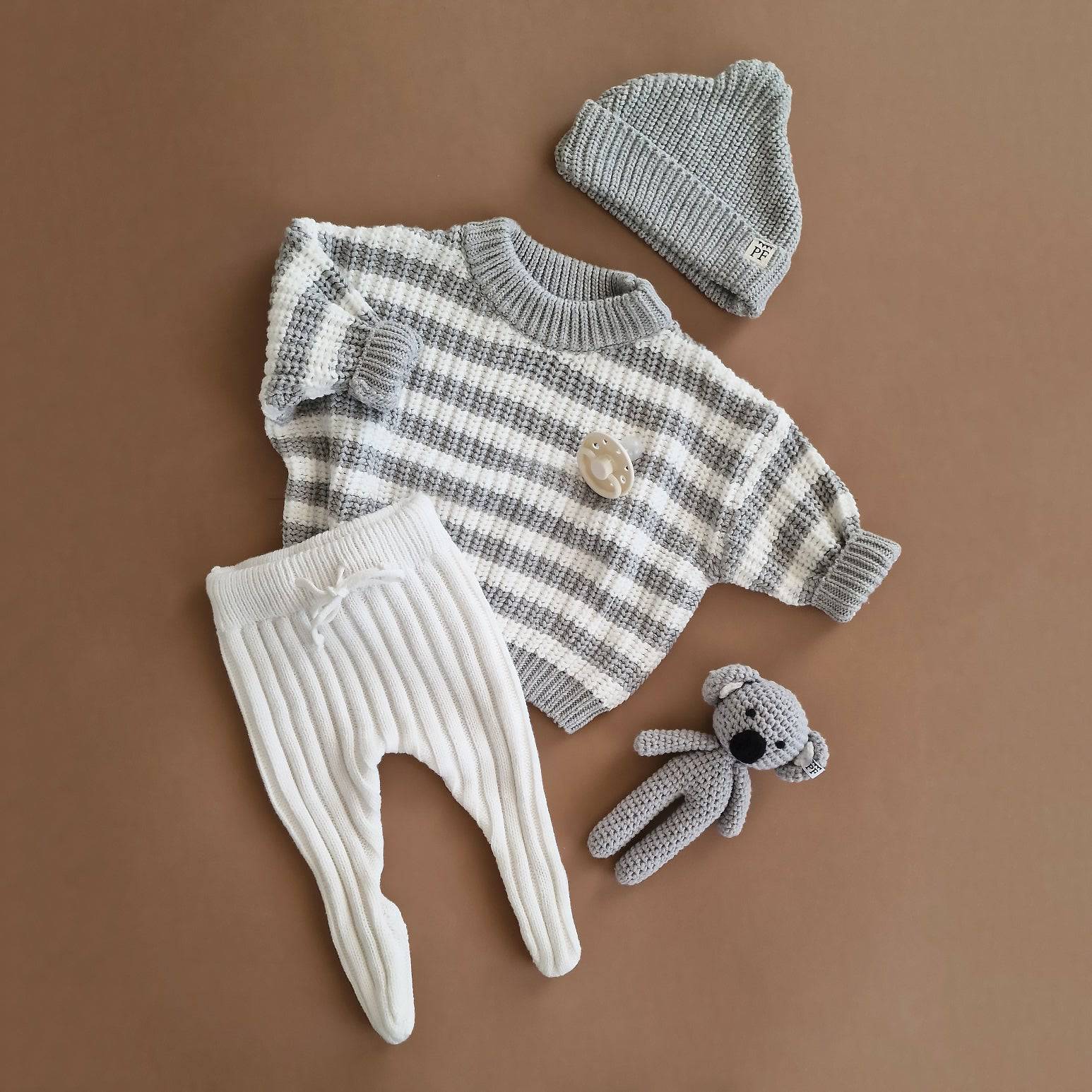 Halten Sie den kleinen Kopf warm mit dieser bezaubernden gestrickten kurzen Mütze. Aus Bio-Baumwolle. Für einen wunderschönen Look mit kürzerer Länge gefertigt, entworfen, um über den Ohren getragen zu werden.