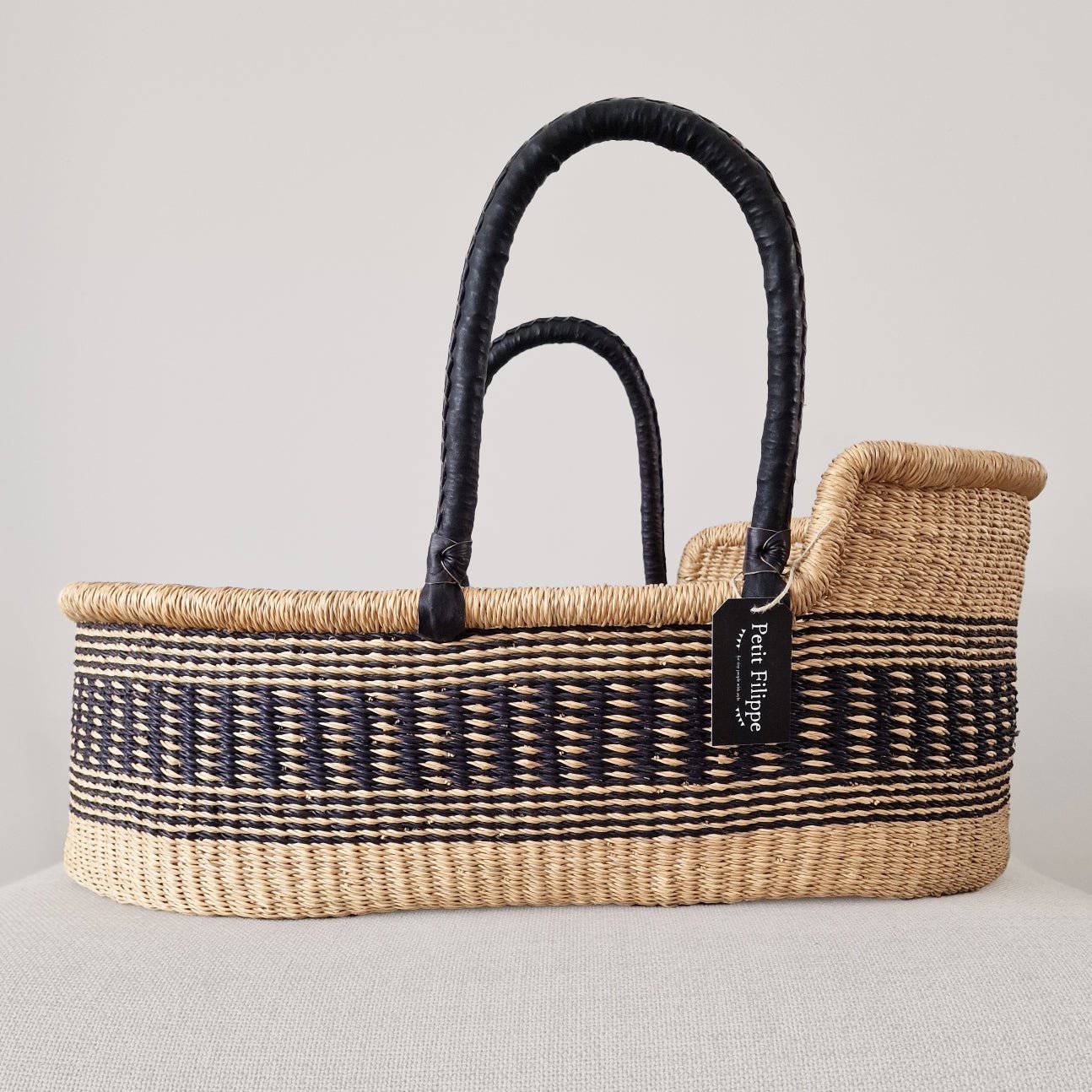 Diese einzigartigen afrikanischen Moseskörbe werden aus rein natürlichen Materialien hergestellt und von unglaublichen Kunsthandwerkern gewebt und verleihen jedem Kinderzimmer oder anderen Räumen in Ihrem Zuhause einen Hauch von Stil. Keine zwei Körbe sind gleich! Die Griffe sind aus Leder.