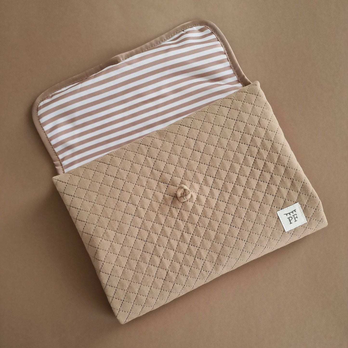 Diese stylische gesteppte Wickelunterlage begleitet Sie überall hin mit Ihrem Baby. Lässt sich leicht zusammenfalten und passt in Ihre Mommy Bag, sodass Sie Ihr Baby jederzeit und überall wickeln können. Innen wasserdicht für eine einfache Reinigung im Falle eines kleinen Unfalls beim Wechseln.