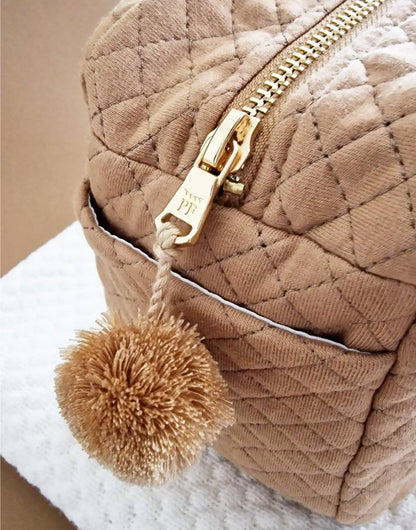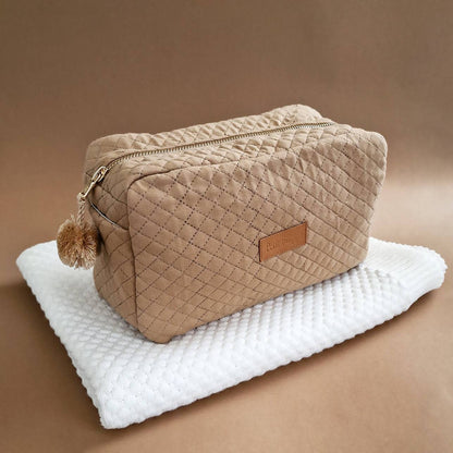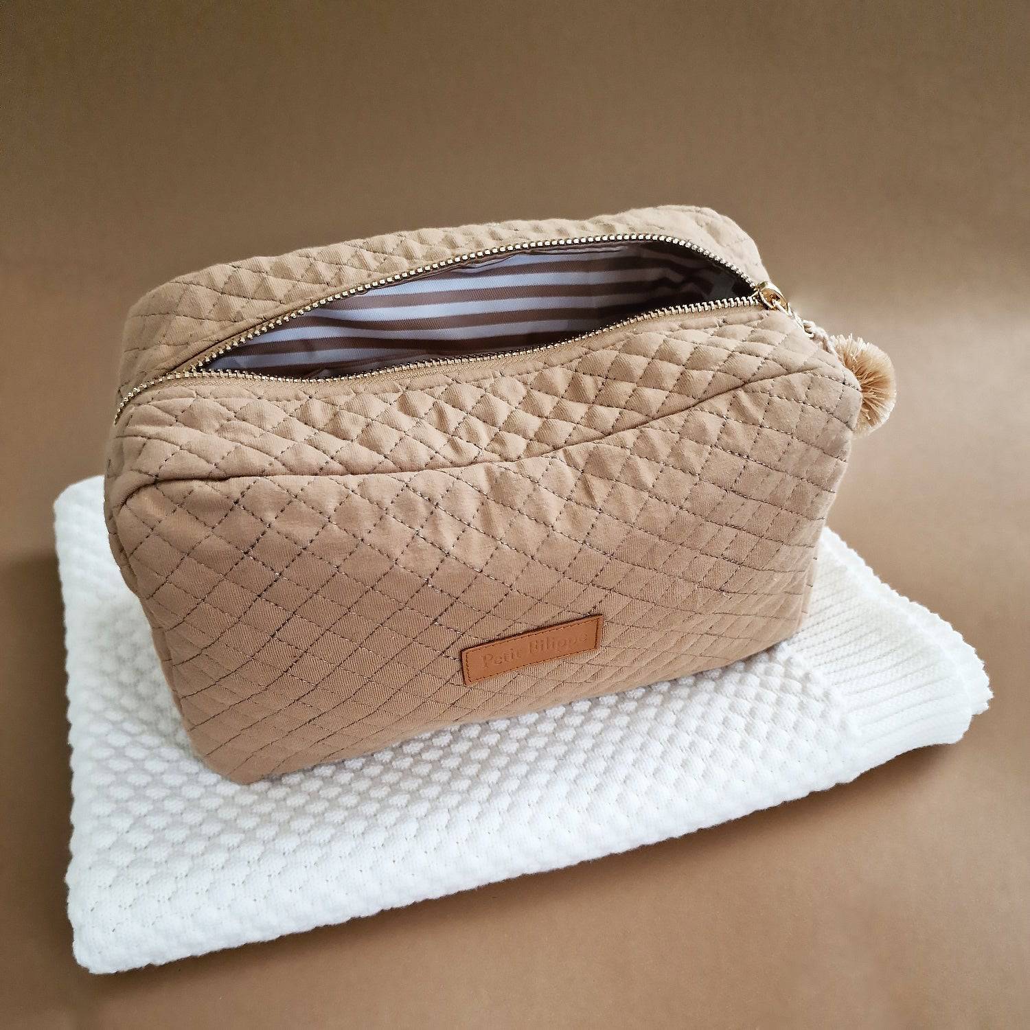 Diese gesteppte Kulturtasche ist groß und praktisch. Perfekt zum Aufbewahren und Transportieren der wichtigsten Utensilien Ihres Babys oder Ihrer Schönheitsprodukte. Wasserdichter Innenraum, um das Auslaufen von Flüssigkeiten bei einem kleinen Unfall zu verhindern.