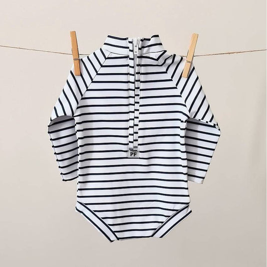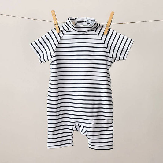 Chunky Cardigan - Baumwolle - Ivory & Misty Blue Stripes