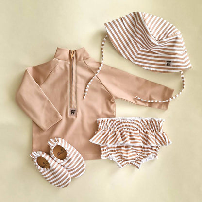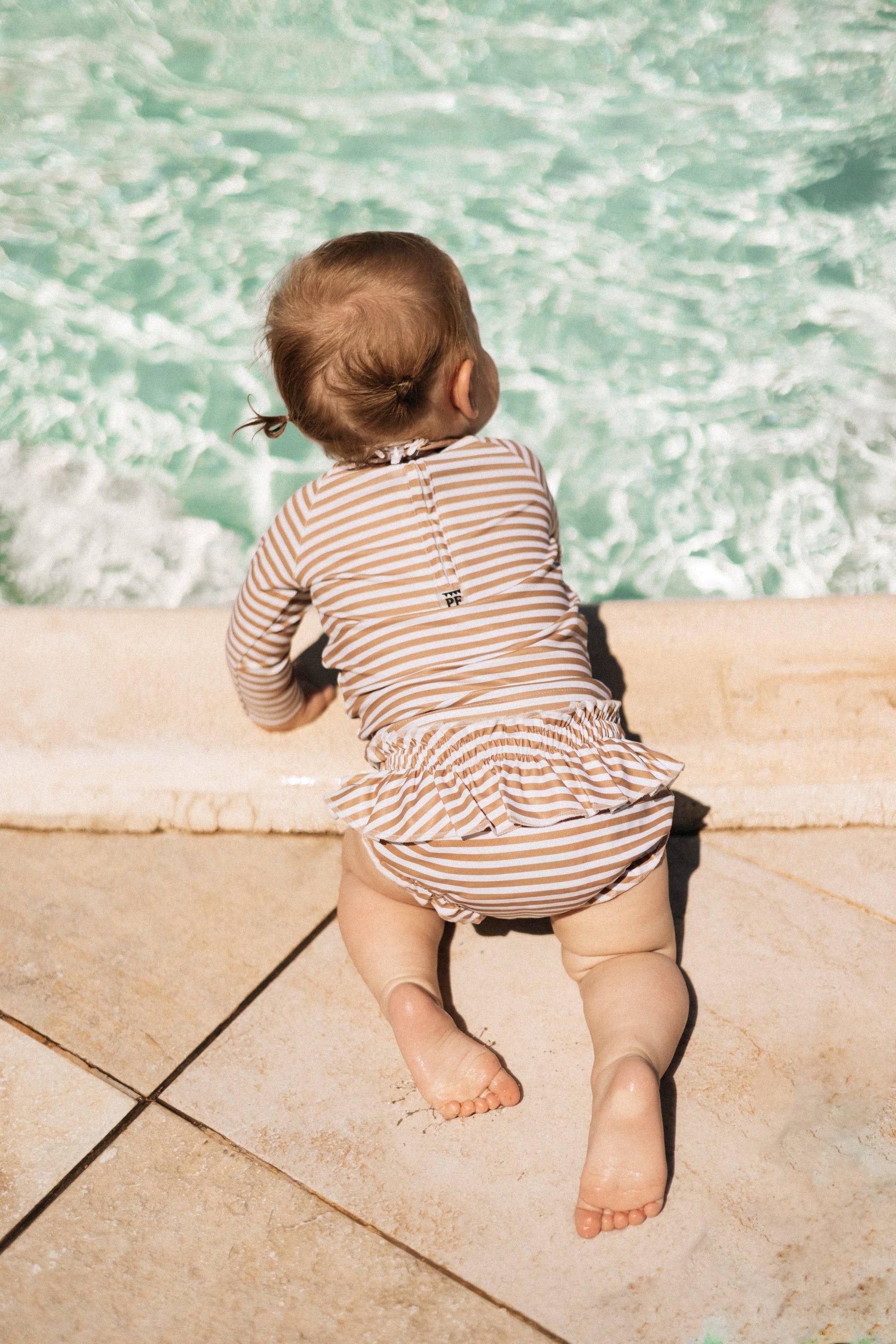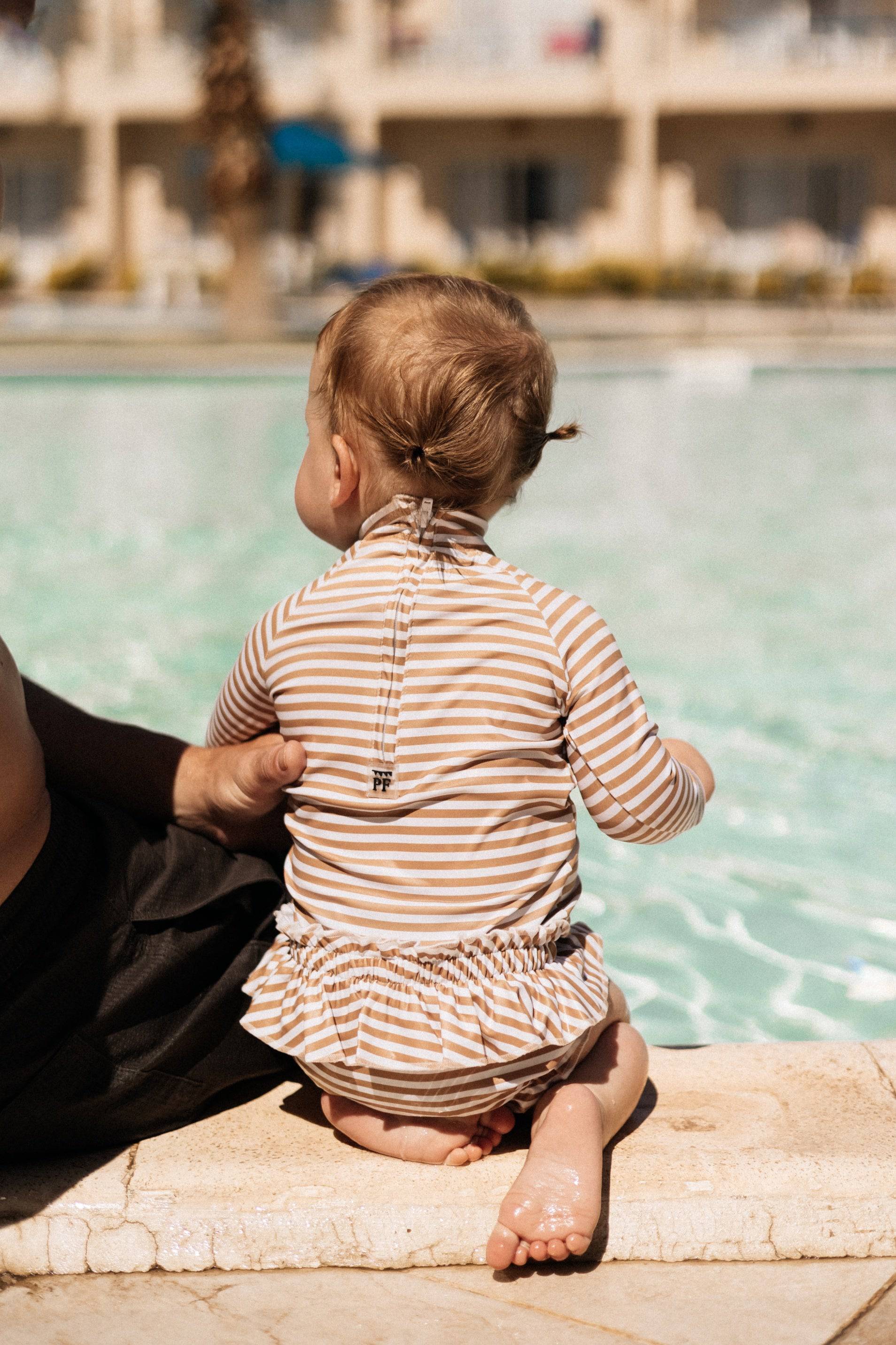 Mit dieser bezaubernden Bikinihose kann Ihr Kleines im Wasser spielen! Die Hose hat süße Rüschen und bietet genug Platz für eine (Schwimm-)Windel. Kombinieren Sie es mit einem unserer Badeshirts, Badeschuhen oder anderen Badebekleidung für ein tolles und schützendes Set!