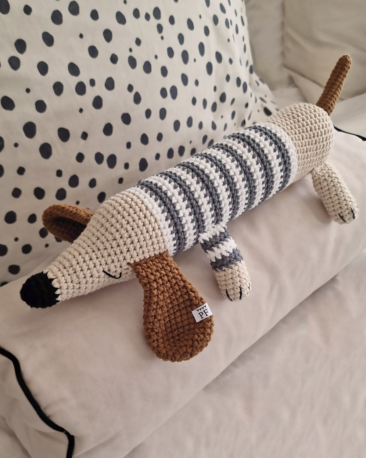 Crochet Dachshund - Baumwolle - Dark Grey Stripes