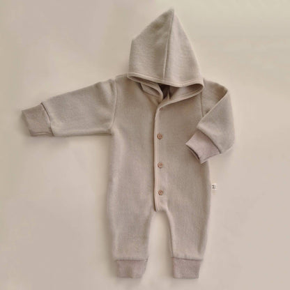 Unser wunderschöner Merino Wollfleece-Overall ist die perfekte Ganzjahresschicht für Ihr Baby, vooral tijdens de frissere maanden. Dieser Einteiler besteht aus unglaublich isolierendem Fleecematerial aus 100 % Merinowolle, ist weich, kuschelig und warm und verfügt über dehnbare Rippstrickbündchen aus Baumwolle und eine Kapuze für zusätzlichen Schutz. Der einfache Verschluss mit Holzknöpfen und die schlichte Silhouette machen diesen Overall sowohl stilvoll als auch bequem für Ihr Kleines.
