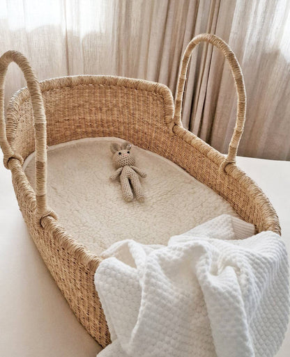 Wolle ist eine erstaunliche Faser, die seit Generationen verwendet wird, um Babys warm und kuschelig zu halten. Petit Filippe Wool Underlays werden in den Niederlanden aus 100 % Merinowolle hergestellt und bieten ganzjährigen Komfort – kühl im Sommer und warm im Winter. Bietet Ihrem Baby eine sichere, natürliche und bequeme Schlaffläche.