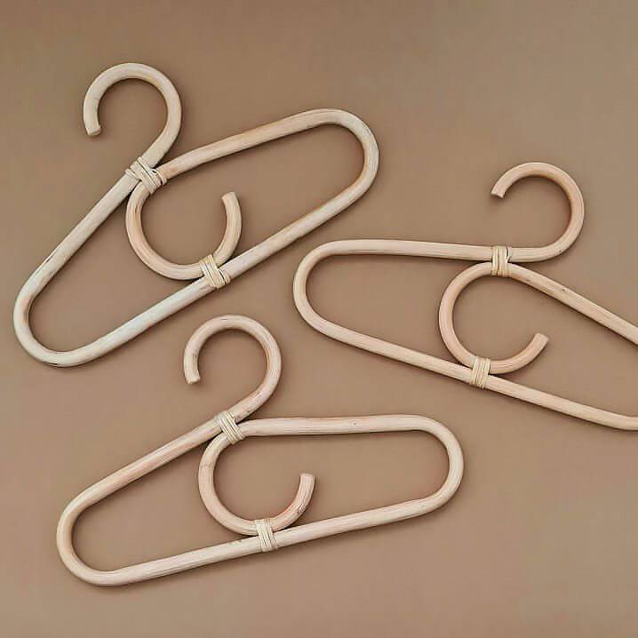Set aus 3 Kleiderbügeln aus Rattan. Die perfekte Größe für die Garderobe Ihrer Kleinen und genauso perfekt als Styling-Accessoire im Baby- oder Kinderzimmer!