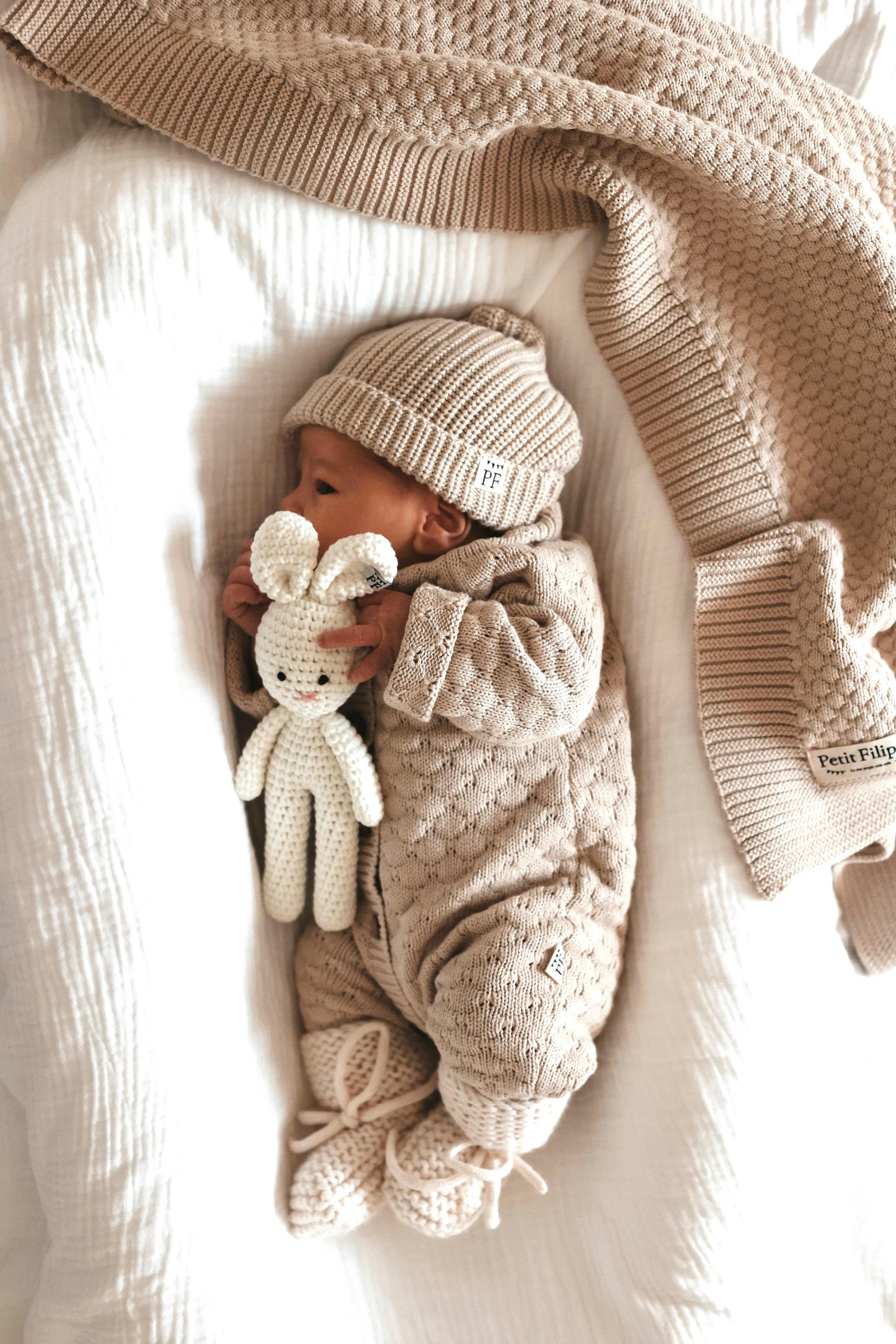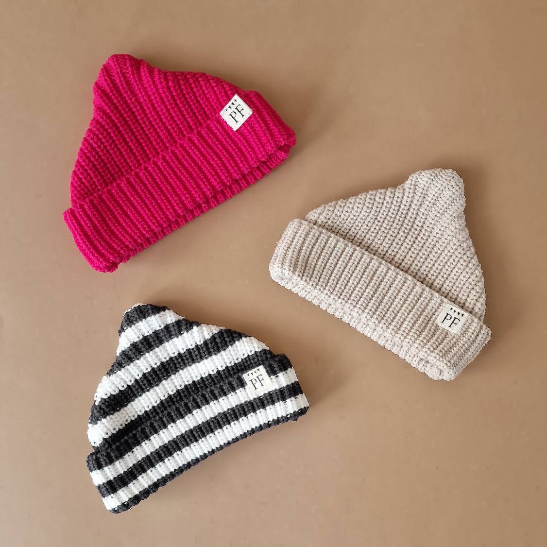 Halten Sie den kleinen Kopf warm mit dieser bezaubernden gestrickten kurzen Mütze. Aus Bio-Baumwolle. Für einen wunderschönen Look mit kürzerer Länge gefertigt, entworfen, um über den Ohren getragen zu werden.