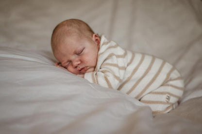 Soft and comfy knitted baby playsuit with wooden buttons. Made of organic cotton. For boys and girls.