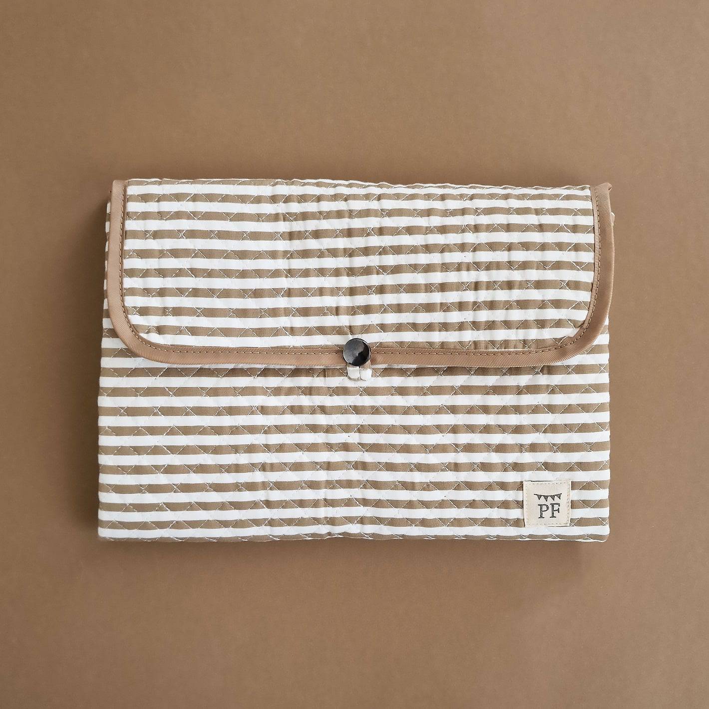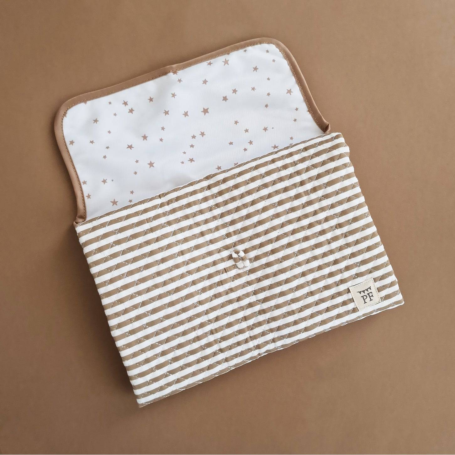 This stylish Quilted Changing Mat will accompany you everywhere you go with your baby. Folds up easily and fits into your Mommy Bag so you can change your baby anywhere, anytime. Waterproof on the inside for easy cleaning in case of a small accident while changing.