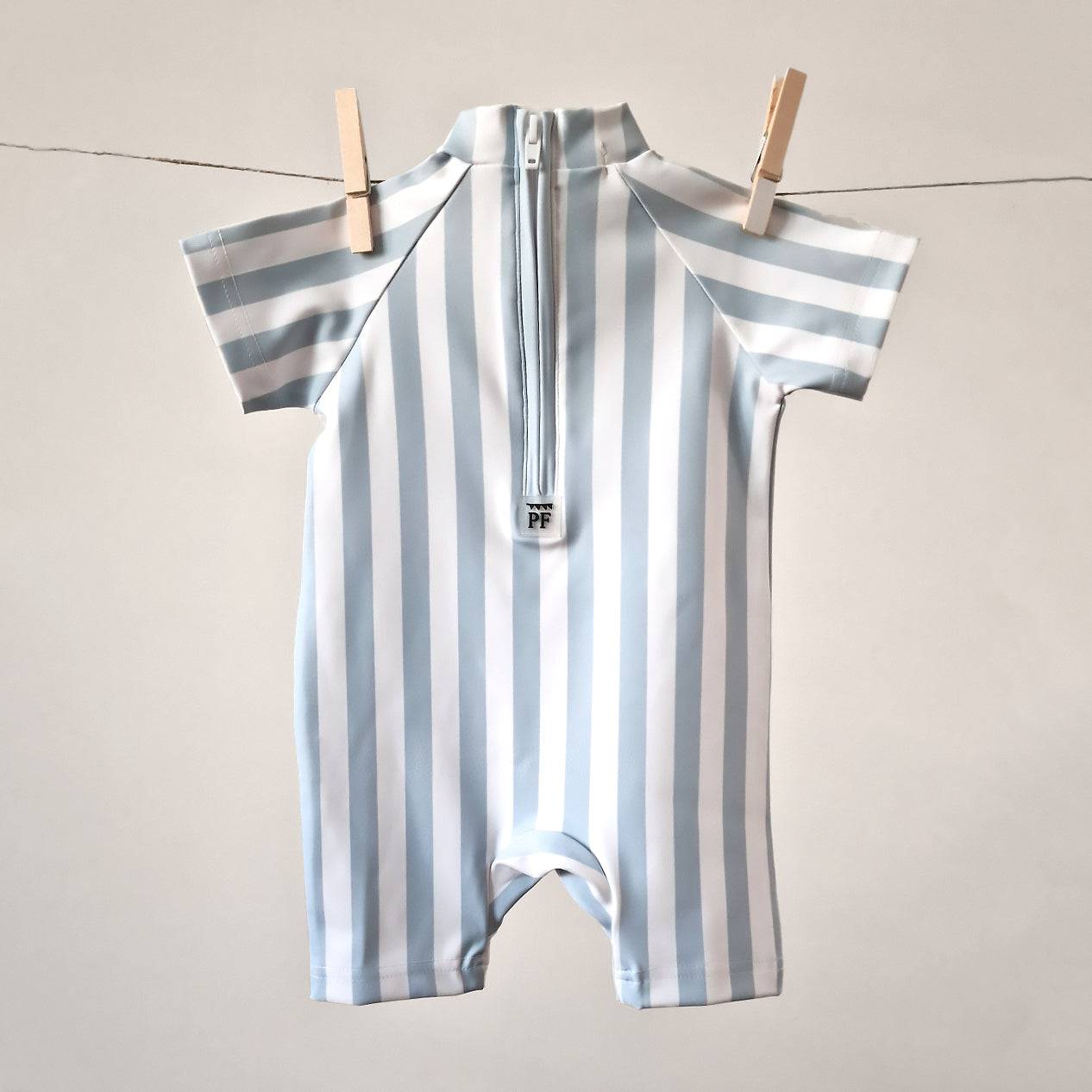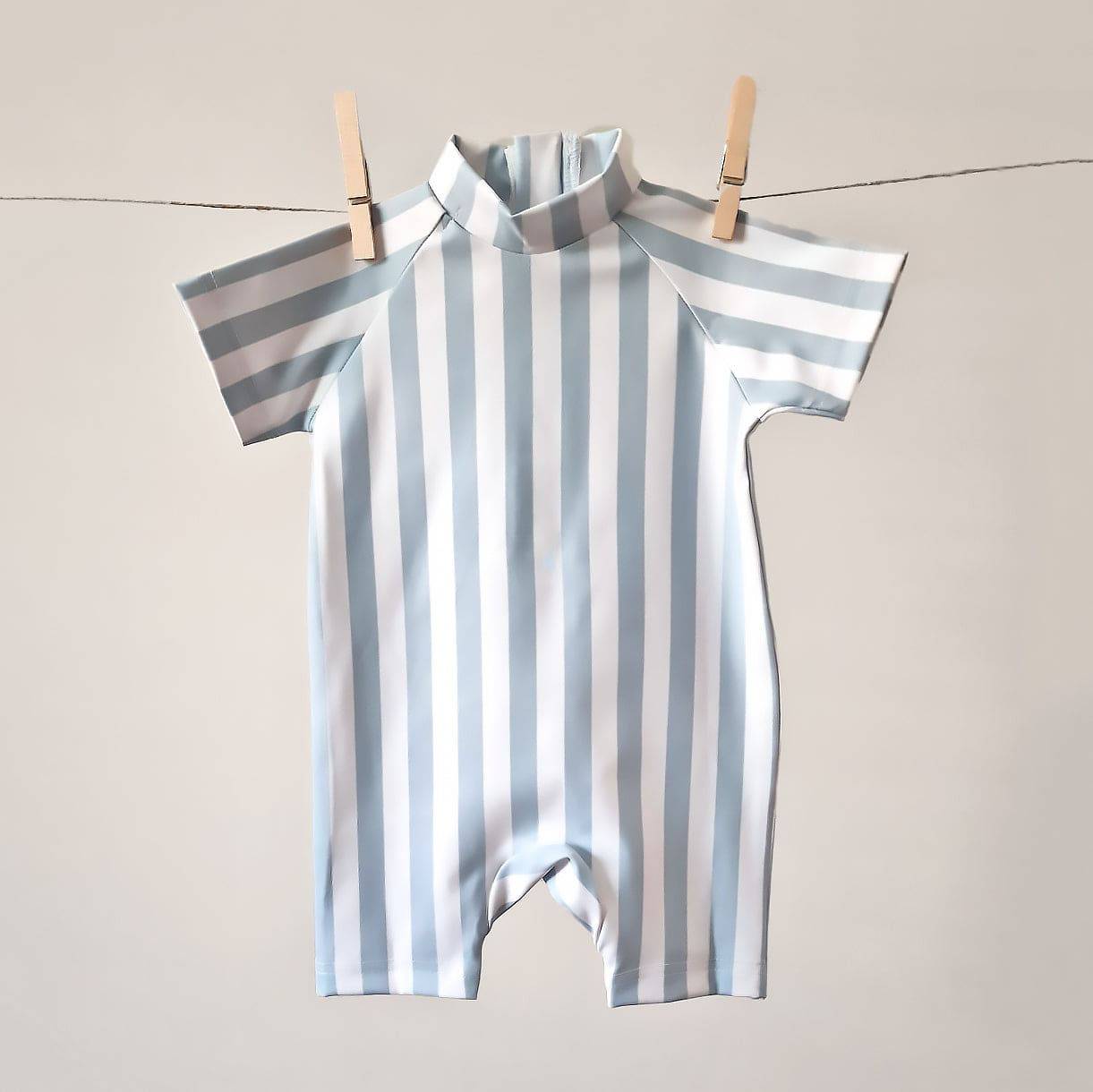 Baby Swim Playsuit - UPF50+ - Misty Blue Stripes