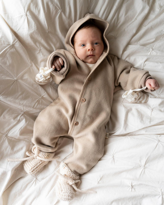Embroidered Knitted Playsuit - Cotton - Oatmeal