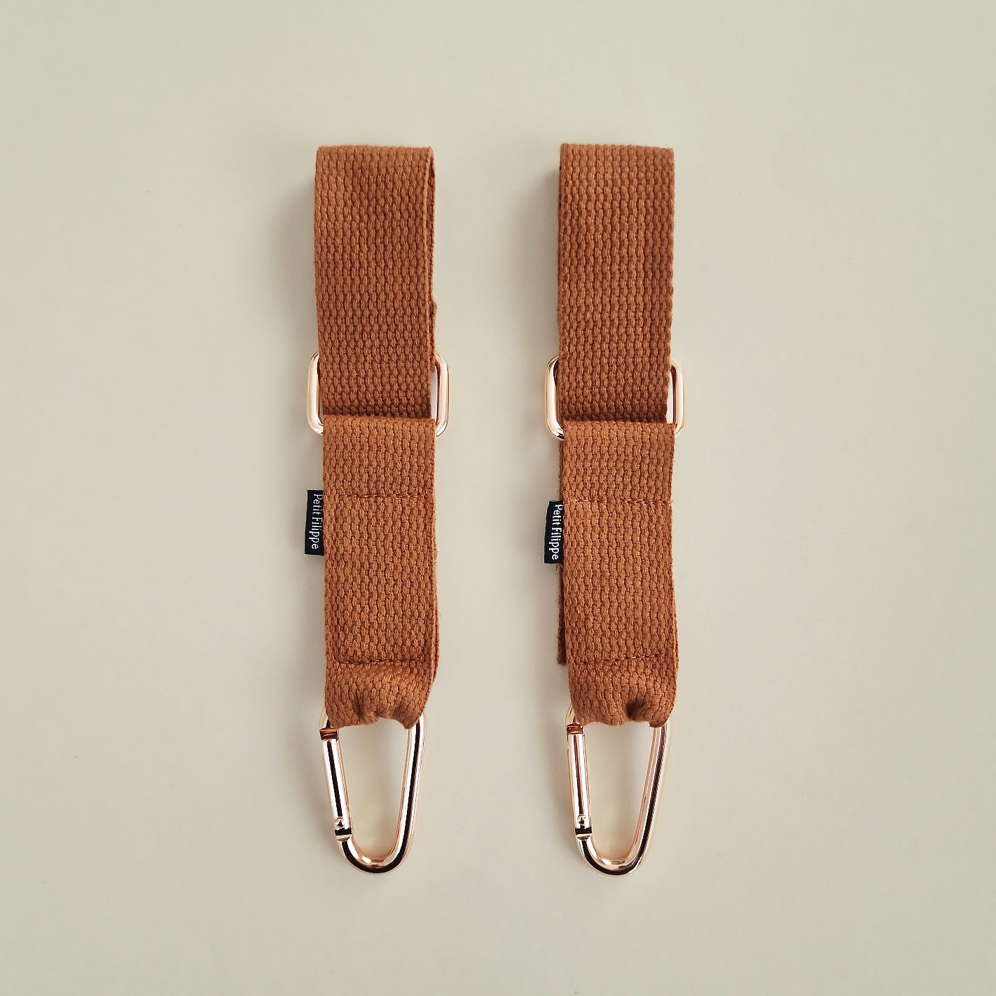 Our stroller clips are compatible with all strollers thanks to the Velcro attachment system. They're sturdy yet lightweight and match our Quilted Mommy Bags perfectly! Sold as a pair.
