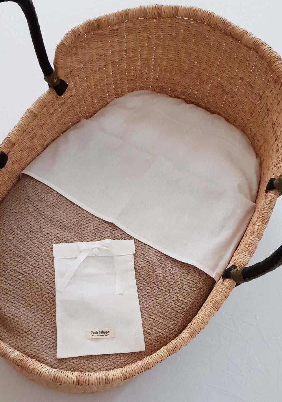 Fitted sheet made of 100% pure soft and durable linen. Comes in a matching linen bag with ribbon, which makes it a lovely gift! The size is suitable for Petit Filippe Moses Basket mattresses. To complete the set, shop our matching flat sheets and/or blankets as well.