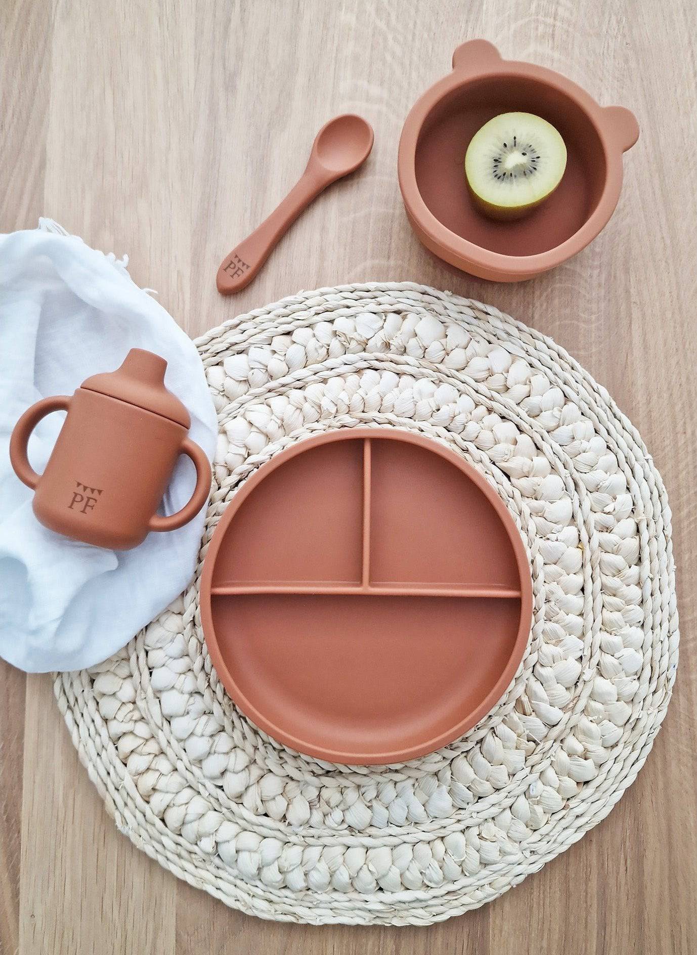 Our Silicone Divided Plate is handy for serving meals with multiple components, especially if your child cares about food touching. Three sections keep food separate for picky eaters and helps with portions. It has a suction base - so you can say goodbye to flying plates and food!