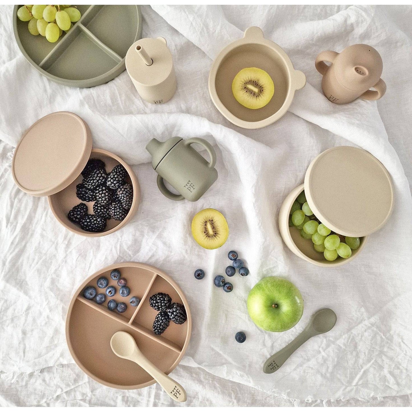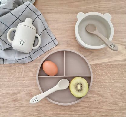 Our Silicone Divided Plate is handy for serving meals with multiple components, especially if your child cares about food touching. Three sections keep food separate for picky eaters and helps with portions. It has a suction base - so you can say goodbye to flying plates and food!
