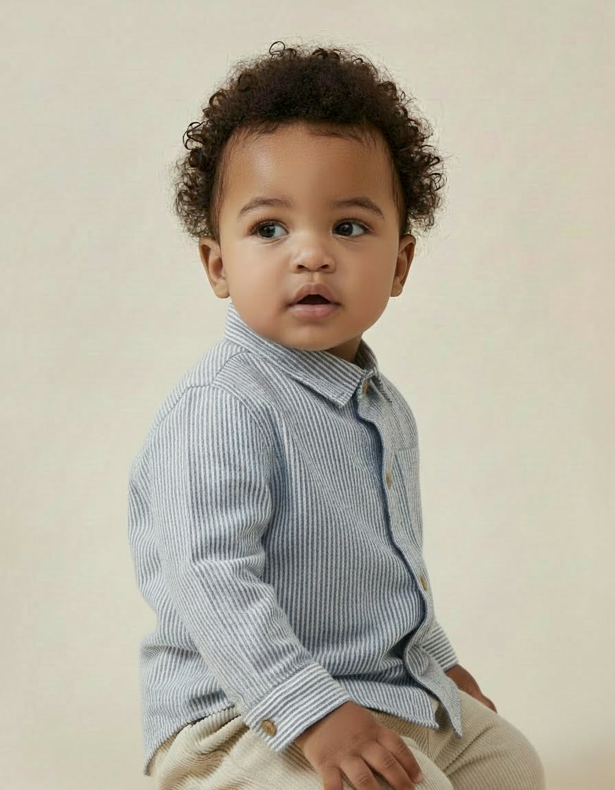 A classic cotton shirt in a fine blue stripe. Designed with a relaxed fit for everyday comfort. The lightweight woven cotton feels soft and breathable, making it easy to layer under knitwear, jackets or outerwear.