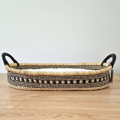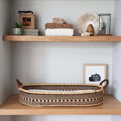 The Moses Basket is made from ‘kinkahe’, also known as ‘elephant grass’, which grows wild in Ghana and is remarkably sturdy when woven.