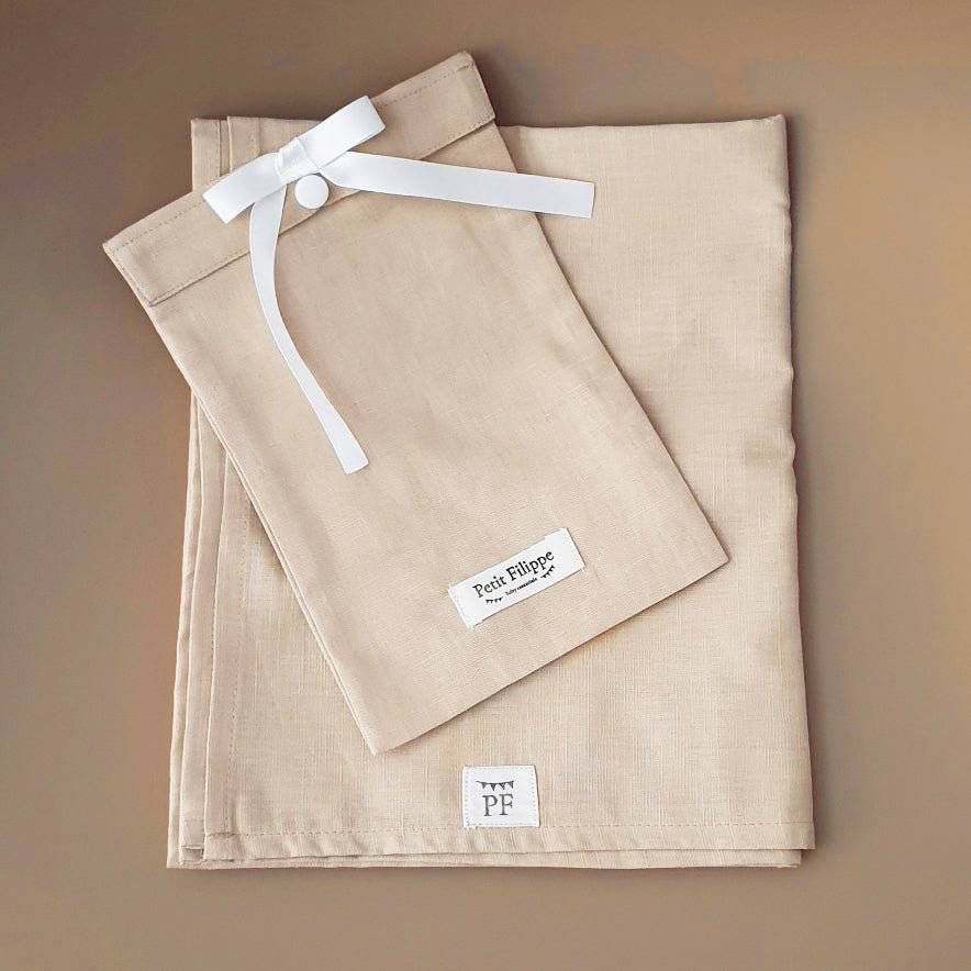 Flat cot sheet made of 100% pure soft and durable linen. Comes in a matching linen bag with ribbon, which makes it a lovely gift! The size (90 x 110 cm) is suitable for any baby crib or bassinet. To complete the set, shop our matching fitted sheets and/or Knitted Blankets as well.