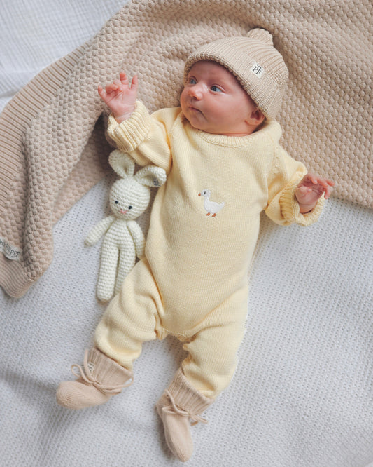 Combinaison courte tricotée brodée - Coton - Jaune doux