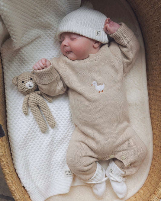 Combinaison courte tricotée - Coton - Rayé avoine & ivoire