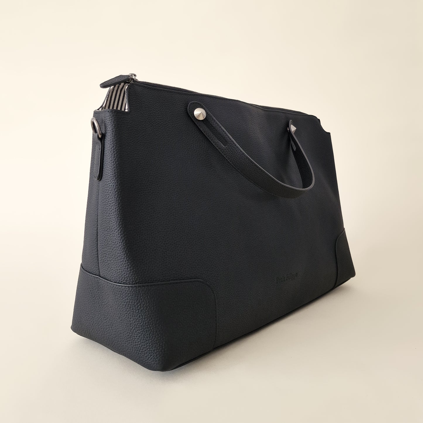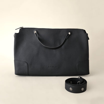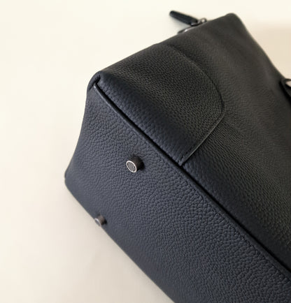 Sac à Langer Classique en Cuir Noir avec Détails Métalliques Graphite