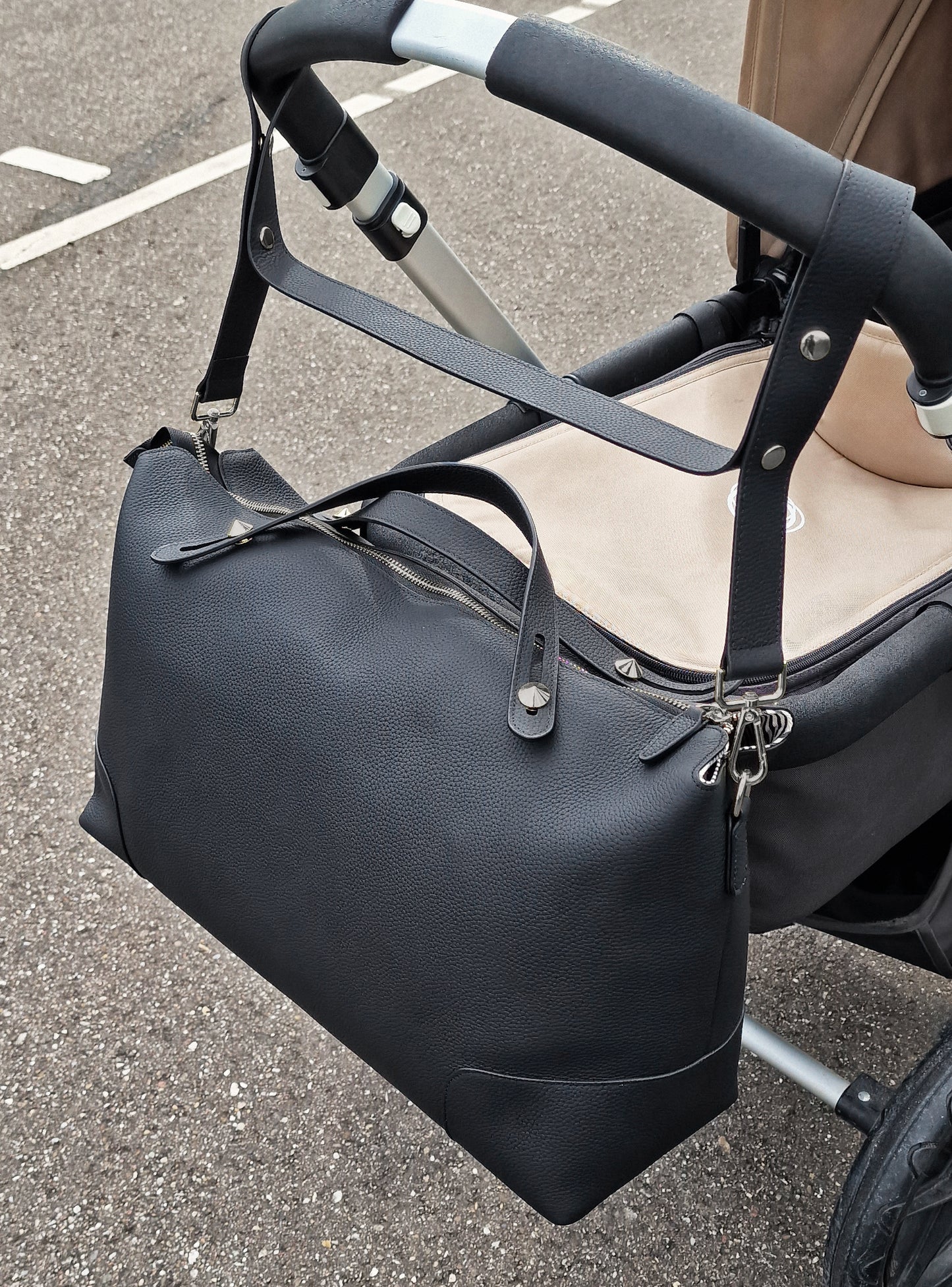 Fabriqué en cuir de vachette pleine fleur 100 %, avec votre choix de finition dorée ou graphite, c’est l’accessoire idéal pour les mamans actives qui ne veulent pas faire de compromis sur le style.