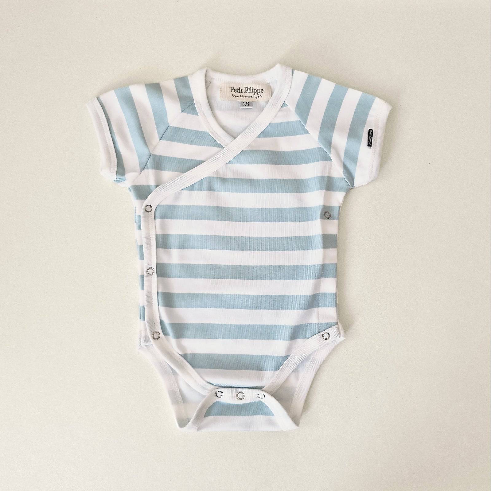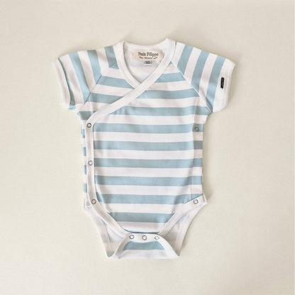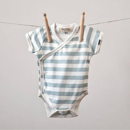 Baby Bodysuit - Short Sleeves - Ivory & Misty Blue Stripes