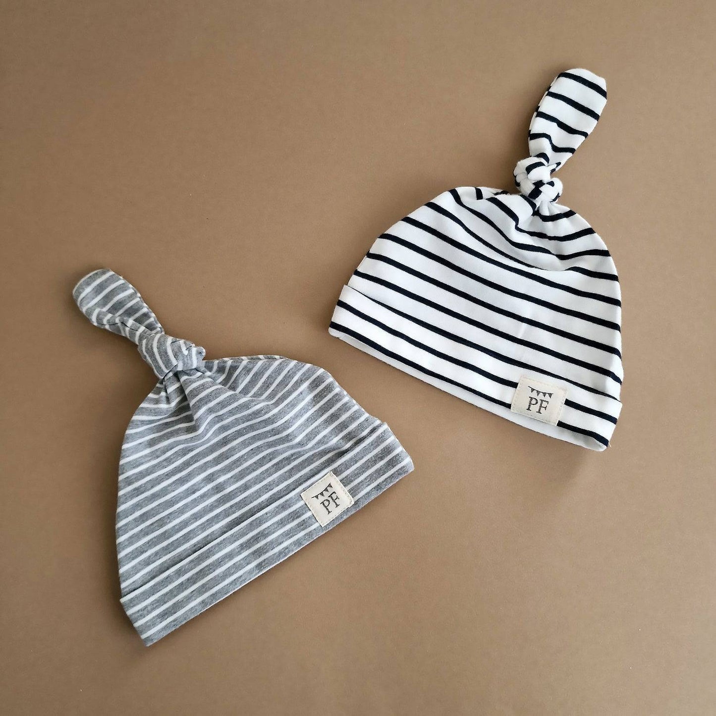 Knot Hats Set of 2 - Breton Stripes & Grey