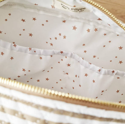 Voor alle moeders (en vaders!) die op zoek zijn naar een praktische én 'stylish' luiertas: onze Quilted Mommy Bag heeft het allebei! Het heeft genoeg ruimte (en zeven vakken!) om flesjes, snacks, speelgoed, boekjes, dekentjes en natuurlijk luiers en doekjes in kwijt te kunnen. En doe je eigen benodigdheden er gelijk bij. Zelfs als je niet met je baby op pad gaat is deze tas geweldig: denk aan korte trips of als handtas in het vliegtuig. Om ongelukjes hoef je je niet druk te maken: deze tas is gemaakt van 100% katoen en kan dus gewoon in de wasmachine. Een beauty en een werkpaard in één!