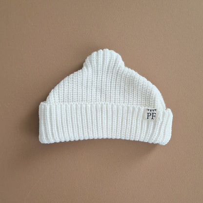 Houd je baby's hoofdje lekker warm met deze gebreide korte beanie. Gemaakt van zacht organisch katoen. Dit mutsje heeft een korter model, ontworpen om boven de oren te dragen. Hoe schattig wil je het hebben?