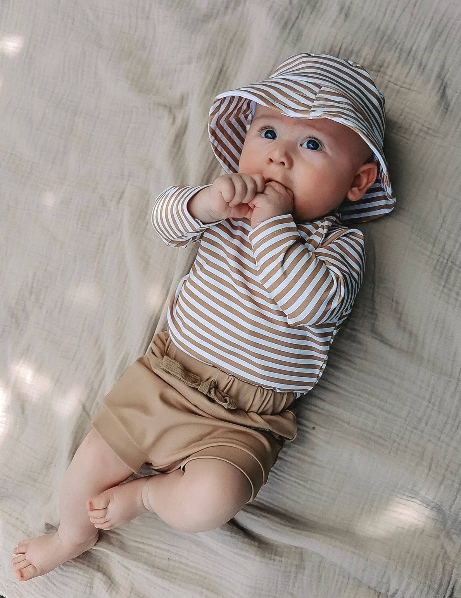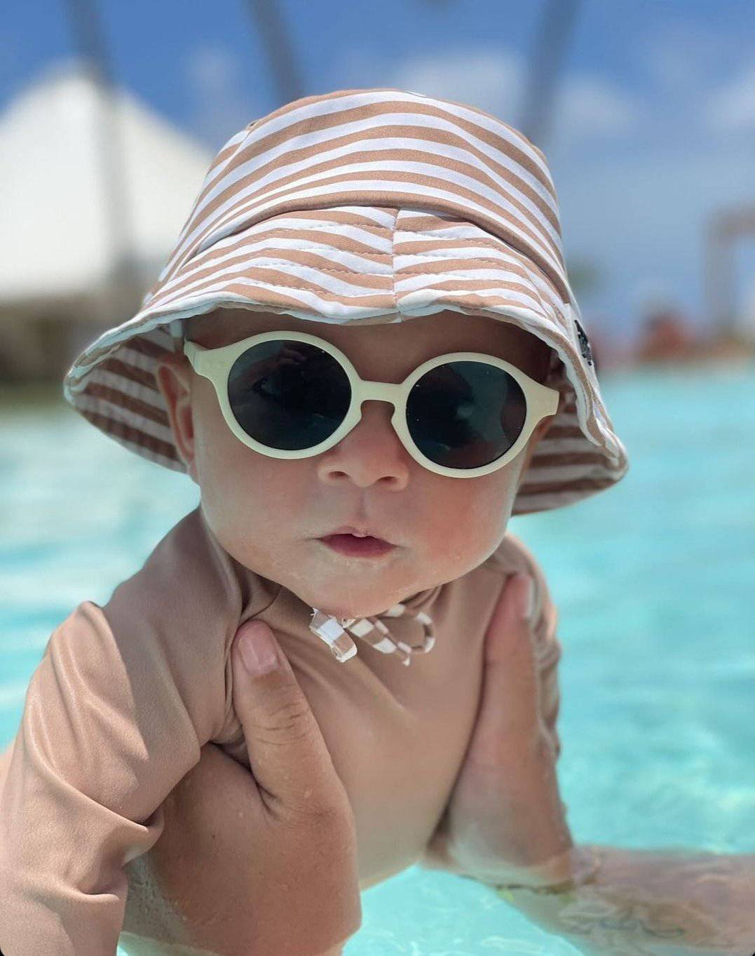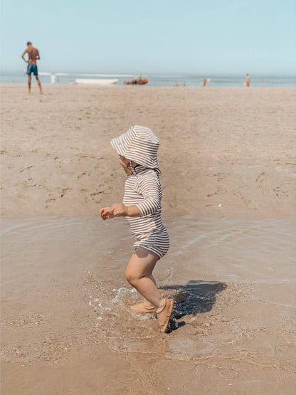 Bescherm je kleintje tegen de zon met dit lieve zonnehoedje in 'bucket style'. Gemaakt van hetzelfde hoge kwaliteit materiaal als onze Swimwear, dus ook perfect voor dagen aan het strand of in het zwembad. Heeft strikbandjes onder de kin zodat het zonnehoedje goed op zijn plaats blijft tijdens het spelen.