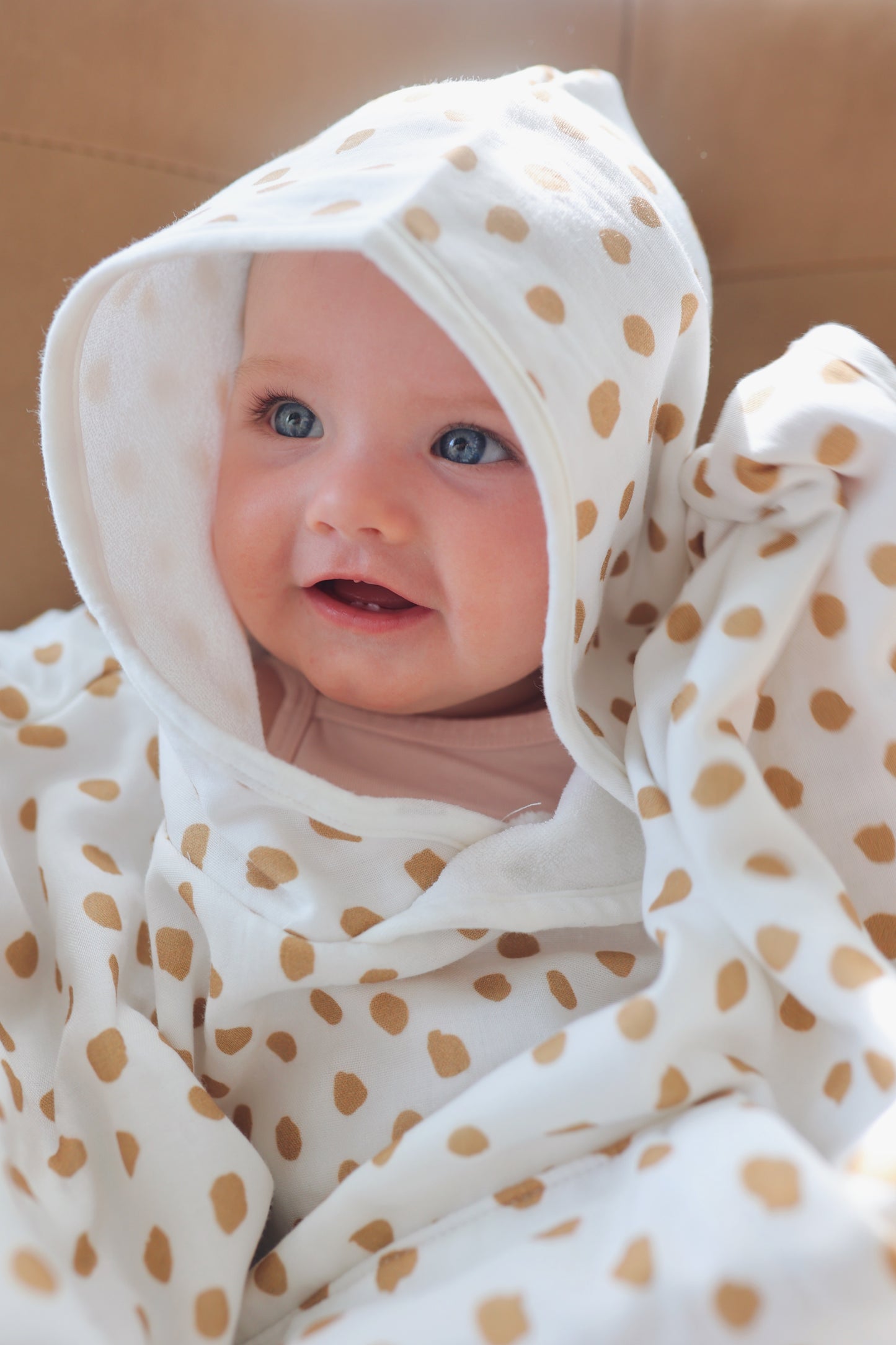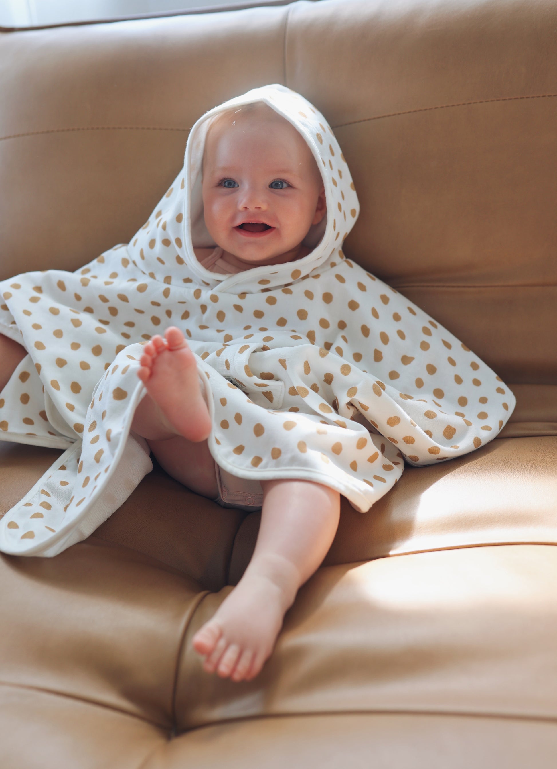 This lovely baby & toddler poncho is ideal for drying and keeping your little one nice and warm after bathtime. Has a large pocket in front, poppers on each side to keep your child cosy, and an adorable pom pom on the hood. Perfect for days at the beach or pool too!
