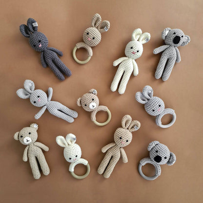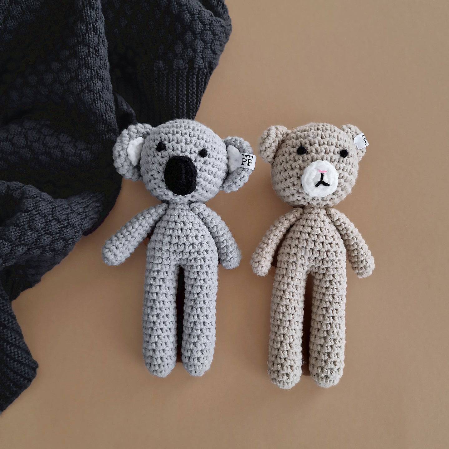 Arent't they adorable? This lovely little bear and cute koala will definitely become your baby's new best friends! They come together, in a cotton drawstringbag.