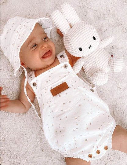 Isn't this adorable? Baby Romper Overalls in 100% cotton denim with adjustable straps (gives room to grow). Perfect for warm days or, when it gets colder, wear with a simple T-shirt or bodysuit underneath.