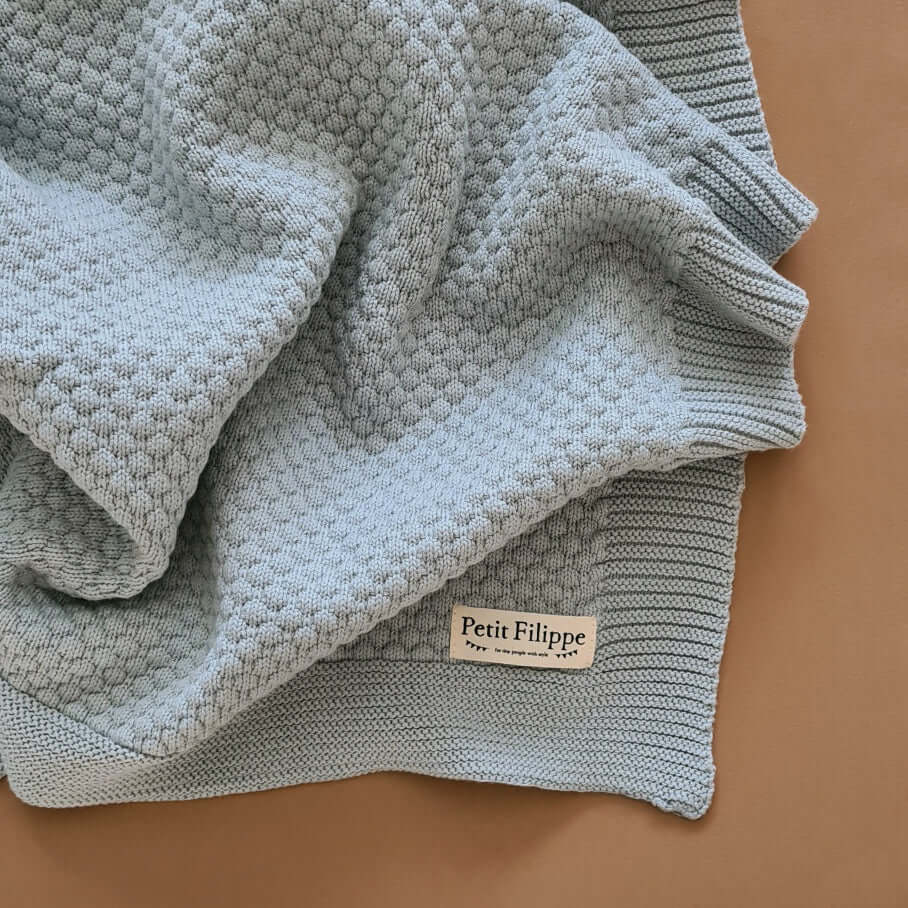 Knitted Blanket - Cotton - 100 x 70 cm - Misty Blue